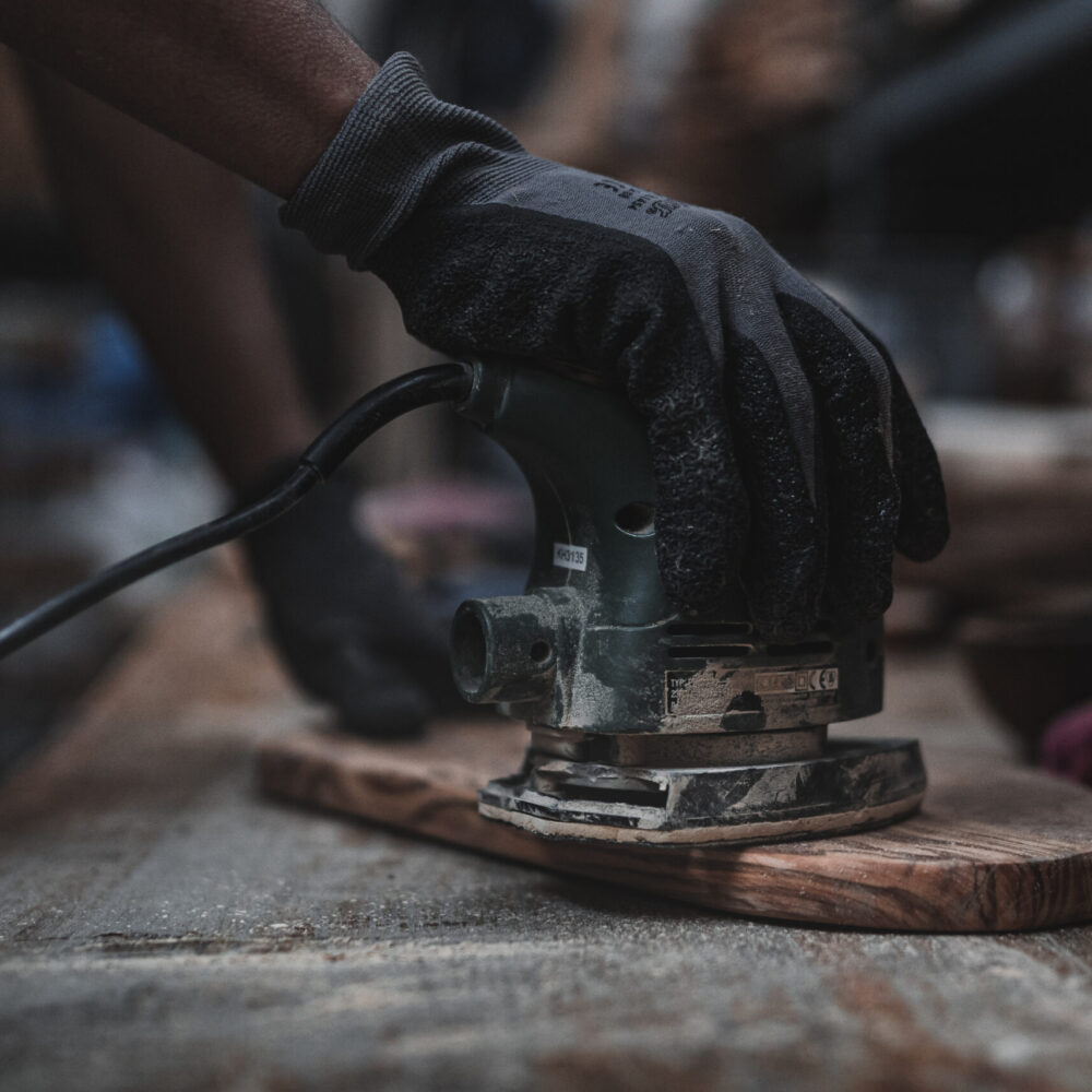 Das Holz wird dann frei ausgeformt, bevor es handschmeichlerisch glatt geschliffen und zu guter Letzt noch die Holzoberfläche mit bienenwachshaltigem Pflegeöl behandelt wird. So sind diese Schneidebretter ausgesprochen formstabil und beständig gegen Verzug und fühlen sich hochwertig an.