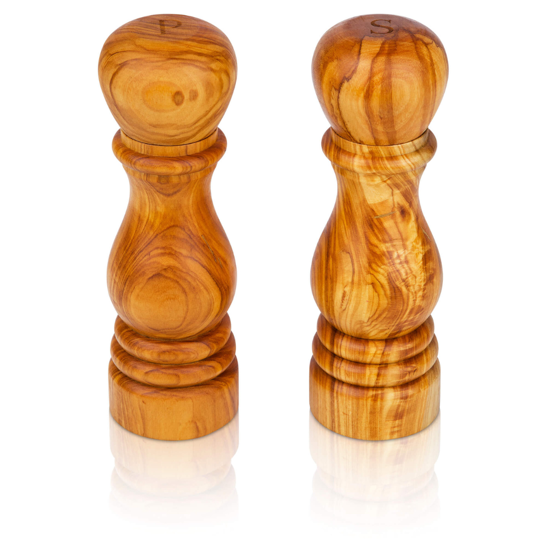 Die Gewürzmühlen sind aus hochwertigem Olivenholz gefertigt, was sie stabil, pflegeleicht und gleichzeitig zu einem Hingucker macht. Die glattgeschliffene Oberfläche der Mühlen liegen dank ihrer abgerundeten Ränder angenehm in der Hand.