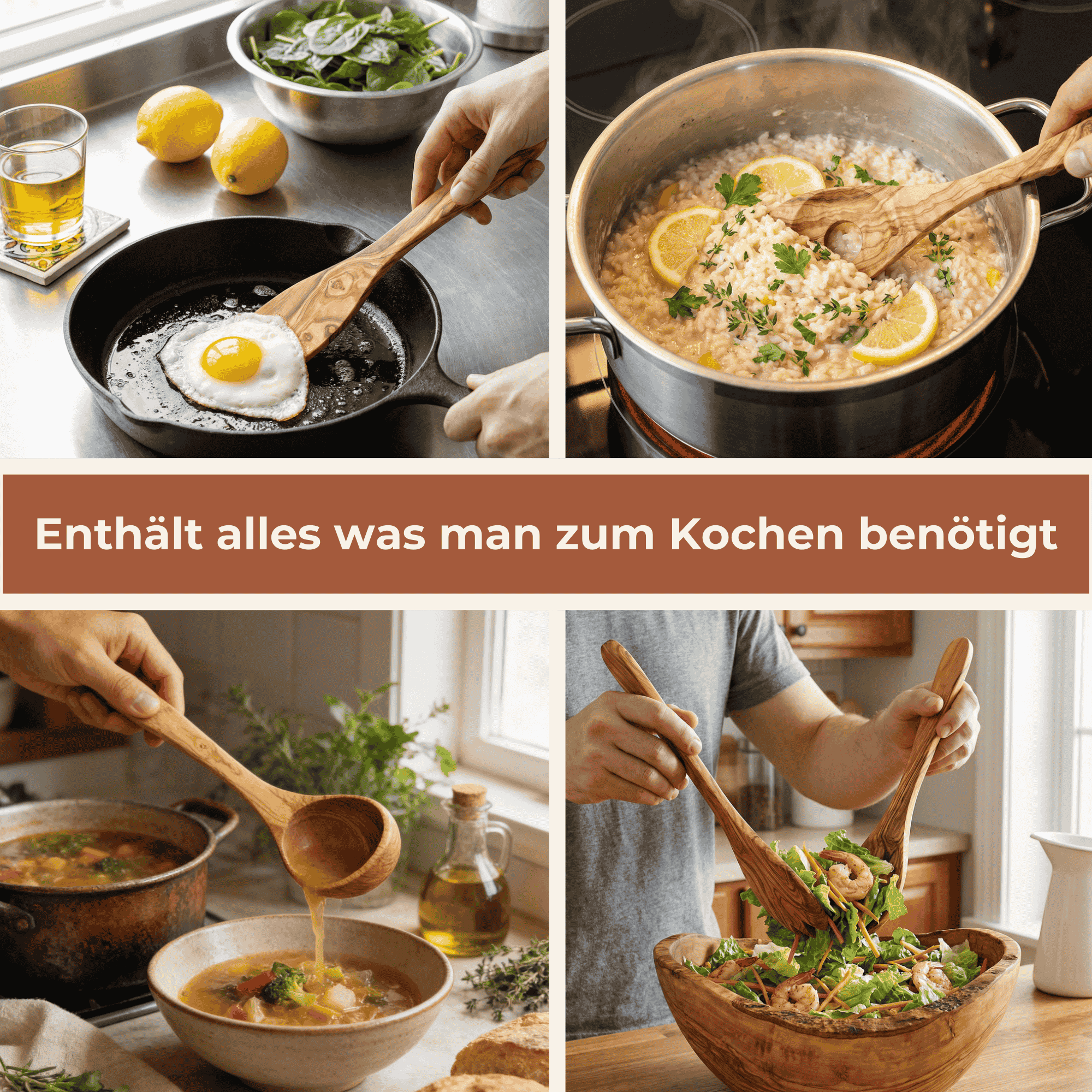 Hol dir jetzt dein handgefertigtes Olivenholz-Kochlöffel-Set und erlebe natürliche Qualität bei jedem Kochvorgang!