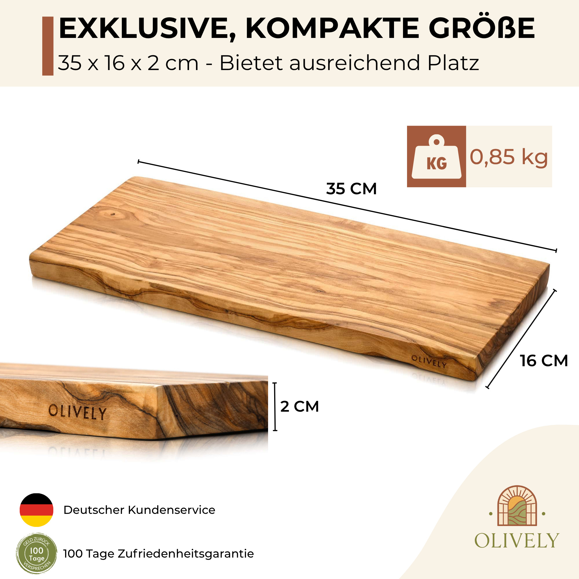 Ein Holzschneidebrett für diejenigen, die es von der Form her schlicht mögen aber trotzdem keine Abstriche in der Qualität machen möchten. Mit seiner wertigen Haptik und der edlen Optik bringt das Brett Farbe und Wärme in Deine Küche. Gleichzeitig ist es ein robuster Wertstoff, auf dem unschöne Schnitte und Scharten kaum zu erkennen sind.